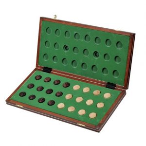 Lesen komplet za igro dama s 64 polji. Zložljiva igralna plošča meri 40 cm, vanjo pa lahko pospravite vse figure.