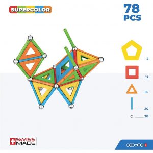 Supercolor Panels 78 omogoča prosto grajenje različnih modelov s pomočjo barvitih magnetnih paličic, kovinskih kroglic in panelov različnih oblik, ki zapolnijo prazne prostore.