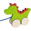 Lesena igrača za potiskanje za mlajše otroke v obliki krokodila. Na kolesih ima pritrjene mehke nogice, ki dajejo videz hoje.