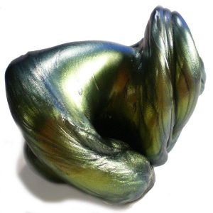 V tem plastelinu, ki spominja na naftni madež, se prelivajo zelena, zlata, srebrna in modra barva. Kakor koli ga obrnete in gnetete, vsakič ga boste videli v drugačnih odtenkih.