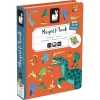 Magnetna knjiga Janod je zasnovana kot priročna škatla v obliki knjige, ki se odpira in ponuja notranjo magnetno površino za igranje. Ko je igra končana, se vsi magneti preprosto pospravijo nazaj v škatlo, kar zagotavlja enostavno shranjevanje in prenašanje. Prenosna zasnova je idealna za igro doma, na potovanju ali med čakanjem, saj se otroci lahko zabavajo kjerkoli. Ta funkcionalnost je odlična za starše, ki želijo svojim otrokom omogočiti igranje tudi zunaj doma, brez skrbi glede nereda ali izgube delov.