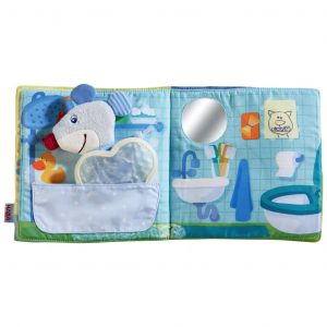 Knjiga spodbuja domišljijo, ljubezen do branja ter igranje vlog. Knjiga ima 8 strani in je primerna za otroke od 6. meseca dalje. Pere se jo lahko v stroju na nižjih temperaturah.