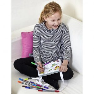 Čudovita vrečka z metulji, ki jo lahko sami pobarvate s posebnimi pralnimi flomastri. Barva se v pralnem stroju spere, tako da jo lahko znova in znova barvate.