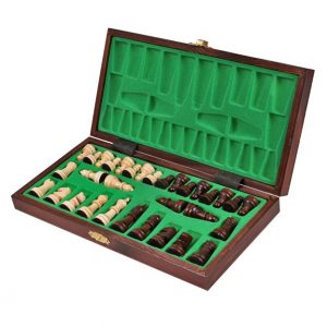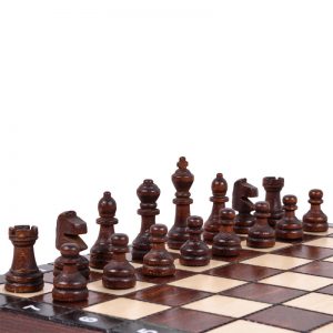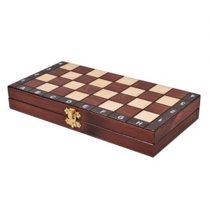 Šah School je manjši zložljiv lesen šah s tablo, ki meri 27 cm in klasično oblikovanimi figurami.