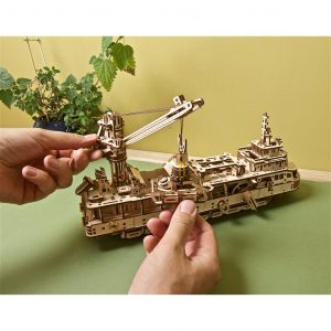 Zahtevnejša mehanska sestavljanka za ljubitelje morskega sveta. Ladjo poganja motor na elastike, opremljena pa je s številnimi detajli.